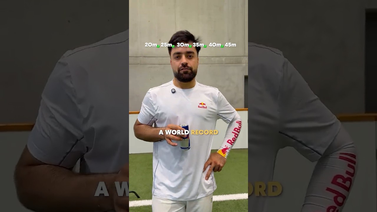 Professional Red Bull cricketer Rashid Khan takes on a distance challenge, where he gets further back each time he hits the …